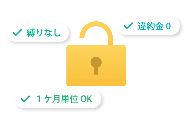 すべてのプランで初期費用0円・違約金なし。1ヶ月単位でご利用いただけます。